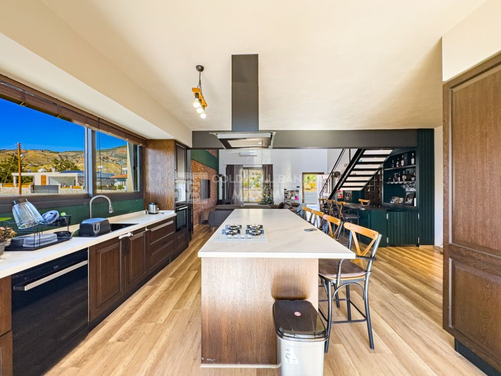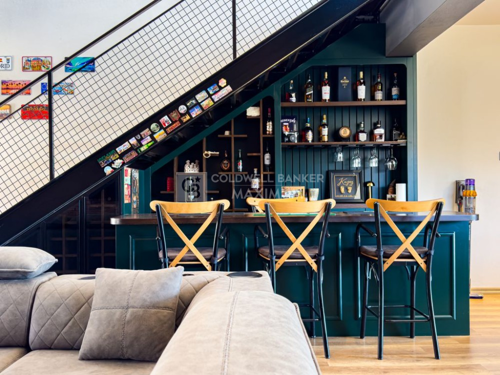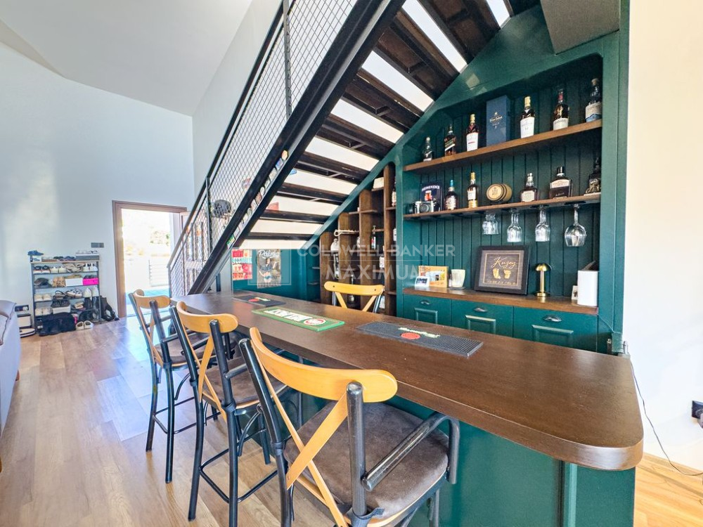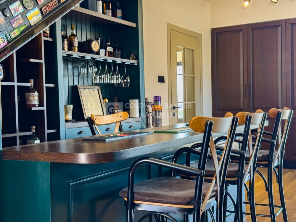 Amerikan mutfak ile özel ceviz ahşap bar tasarımı